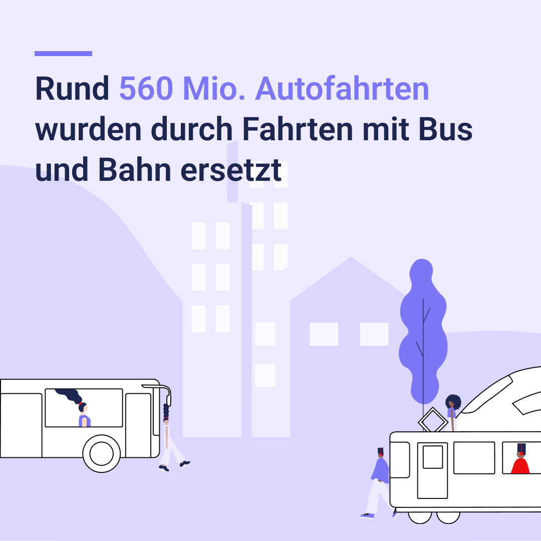 Nach Angaben des Verbandes der Verkehrsunternehmen (VDV) steigt auch die Zahl der Menschen, die seitdem dauerhaft mit Bus und Bahn unterwegs sind. Rund 23 Millionen Menschen haben es im Laufe der zwei Jahre mindestens einmal genutzt.